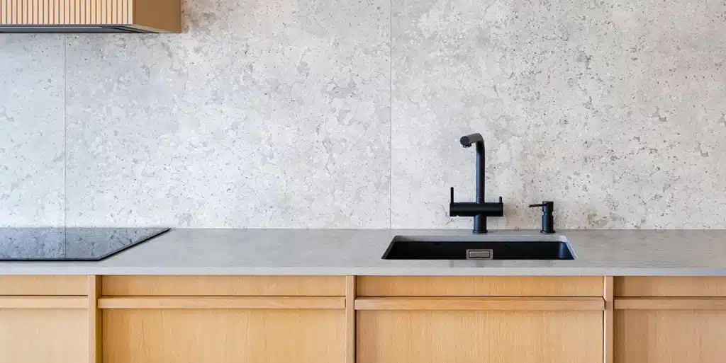 Composiet is populair in moderne keukens vanwege de kleurvastheid en praktische eigenschappen.